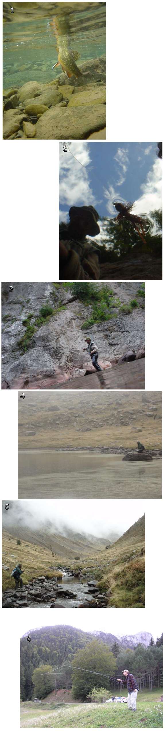 Photo 1: A brook trout Photo 2: José Ramón and a grasshopper Photo 3: Walking on water Photo 4: A lake on the mountains Photo 5: José Ramón some minutes before suffering from hypothermia Photo 6: Me just about to become enlightened