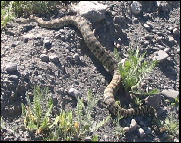 This averaged-sized western rattlesnake is just giving the "see me? I see you" shake, not the "screw off!" full-on buzz.