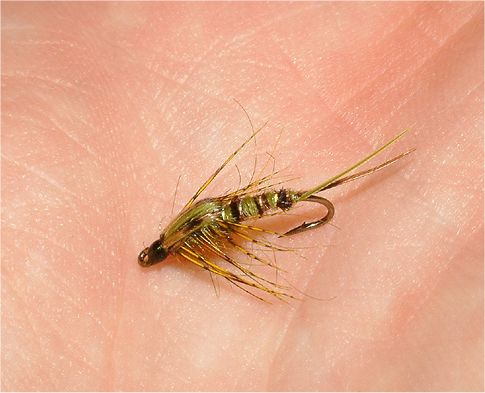 Bug in question is the mixed pheasant tail something or other (snappy title:-)). It's tied with an alternating golden and dyed olive pheasant tail abdomen, olive seals fur thorax, partridge legs, and mixed thorax cover as per abdomen. For chunky nymph lovers only.