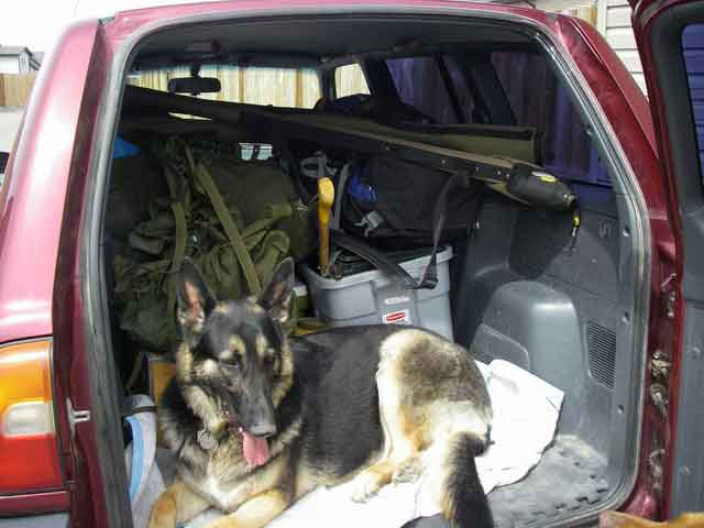 Fischer saw how much room he would have in the back , jumped out and ran to the passenger side. Anybody know the rules on Dogs driving when on fly fishing trips?