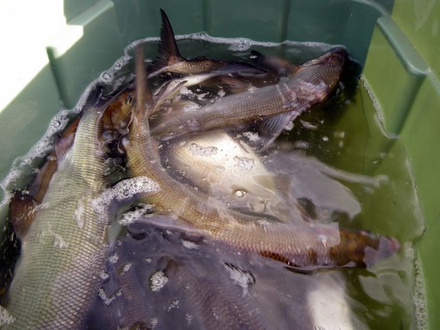 Thousands of fish needed to be moved from a river back into a reservoir. There may be thousands more to move still.