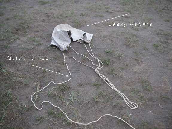 Introducing the all new Sexyloops® Simms® Kayak Drogue featuring the never-seen-before safety collapse rope, cleverly designed to collapse the drogue without capsizing your boat. This drogue is not available in any shops, so you will need one old pair of leaky waders (they don't have to be Simms - this was just a little bit of free promotion on our part, and besides it's all I had available) and some rope. Tie it all up as you would normally, buy yourself a kayak and away you go...