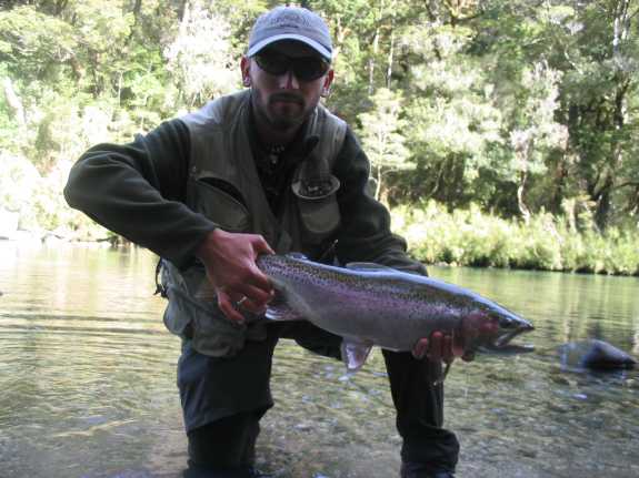 Ronan catches a small fish by accident and then tries to make it bigger by sticking his arms out."It's about two and a half pounds, Paul."