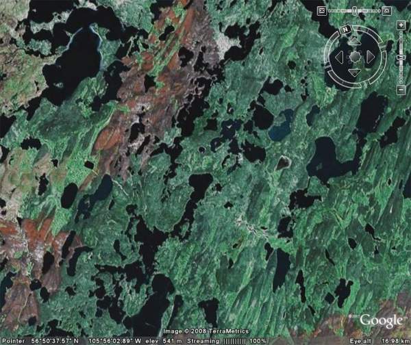 Here's a view of the area we're fishing this week. Jimmy's camp is on one of these lakes. It's a bit of an adventure just getting into the place, but we're hoping the fishing will be something special. We're tooled up and ready for everything. Full report next week.
