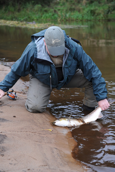 This salmon - a nice 6-7 pounds grilse, slightly colored, was also caught in westerly wind and a light rain - perhaps the best fishing weather of them all!