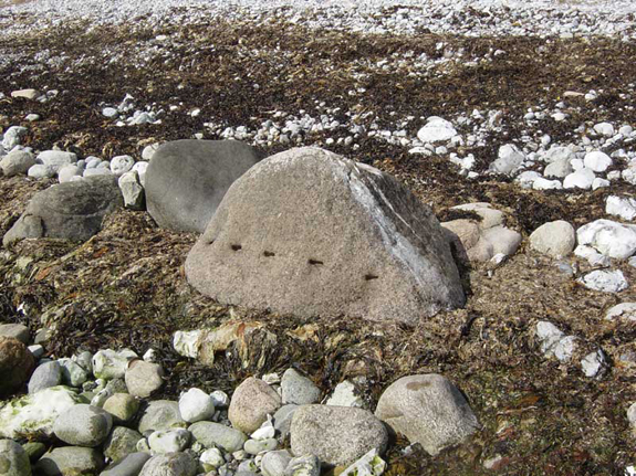 Coming back in from a small reef on one of the places I visit regularly, I suddenly notice this stone. I've never seen it before although I have fished there many, many times. The row of small holes are made with a chisel with the purpose of cleaving the rock in tow in order to use it in a building - most like a church. The holes were probably made between 1150 and 1200 A.D. That day, my two greatest passions came together - flyfishing and archaeology!