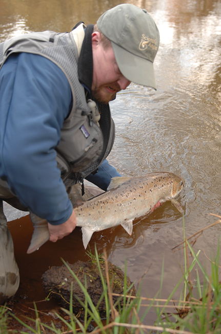 This (app.) 14 pound salmon was caught on a 9'6" 6-wt rod and a customised type 8 sinktip shootinghead. According to the timeline in the series of pictures my friend, Rasmus Bohnensach took, the fight lasted 7 minutes and I didn't need or want a fightbutt at any point.