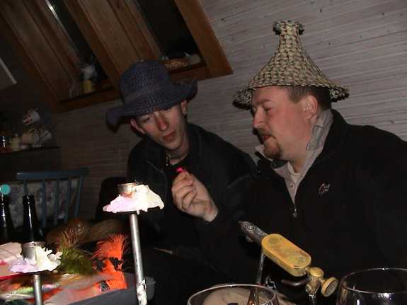 Following a flytying lesson by Paul, Viking Lars demonstrates the "whipfuck".